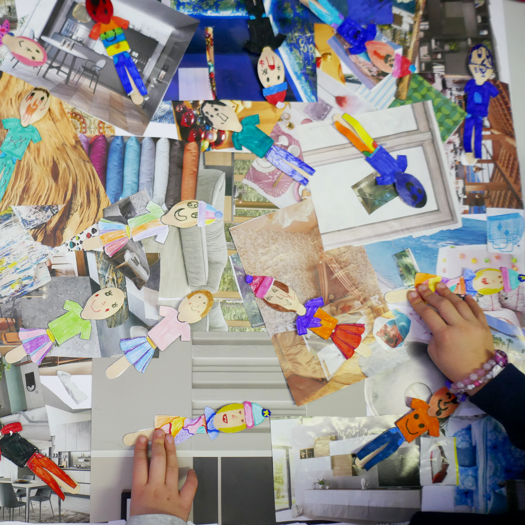 Il risultato è stata la realizzazione di un’opera collettiva ispirata allo stile e ai soggetti prediletti dal pittore. Proprio come lui, i partecipanti hanno utilizzato materiali diversi, incollando carta, cartone e fogli di giornale.