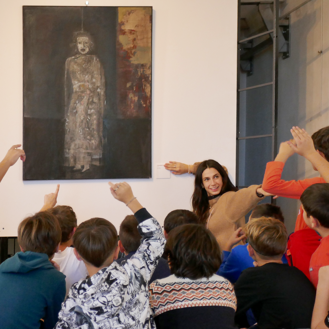 Durante le visite alla mostra I mondi di Mario Lattes #2 a Monforte d’Alba, i piccoli sono stati sollecitati a esprimere i loro pensieri, le loro idee e le loro impressioni di fronte alle opere. Dopo aver raccontato brevemente la storia dell’artista, è stato chiesto loro: “Cosa vuole comunicarci Mario Lattes attraverso il suo lavoro?”.
